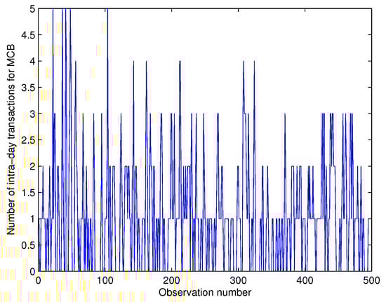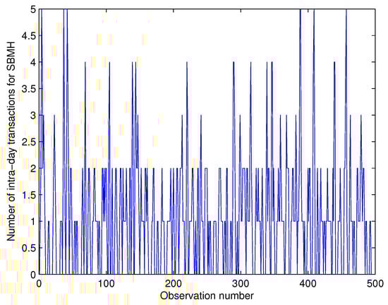 The transactions of MCB and SBMH must be inter-related as they operate in the same sector, namely the banking sector and provides the same line of services and financial activities. Thus, we collected data from the several brokers on the number of daily transactions of these two banking institutions from 4 October to 10 December 2021 over 30 min intervals. As far the covariates are concerned, based on previous researchers [,,,], the following variables were identified as those influencing the number of daily stock transactions on the SEM: the intervention of any COVID-19 news that affect the financial market, the time of day effect and the day effect.
