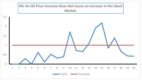 Dynamic asymmetric causality test results at the 5% significance level. (H0: An oil price increase does not cause an increase in the stock market price index.).