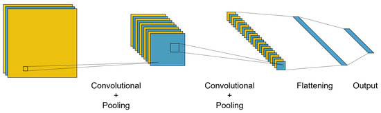 After being processed in the cascade of convolutional and pooling layers, the information flow is flattened, i.e., it is structured in a suitable format to be further processed. The last step of the classification process takes place in one or more dense layers, providing the final output.