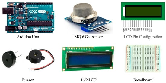 - Attia, H.A.; Halah, Y.A. Electronic Design of Liquefied Petroleum Gas Leakage Monitoring, Alarm, and Protection System Based on Discrete Components. Int. J. Appl. Eng. Res. 2016, 11, 9721–9726. [Google Scholar]