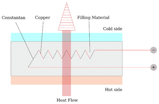 A heat flux sensor is a device that produces an electrical signal that is a linear function of the heat flow passing through it. These sensors are usually flat, thermally resistive plates (schematically shown in Figure 2) with thermocouples that have several thermophiles integrated inside of the thermocouple substrate. Sensors for air temperature measurements produce an electrical signal that is a linear function of its temperature.