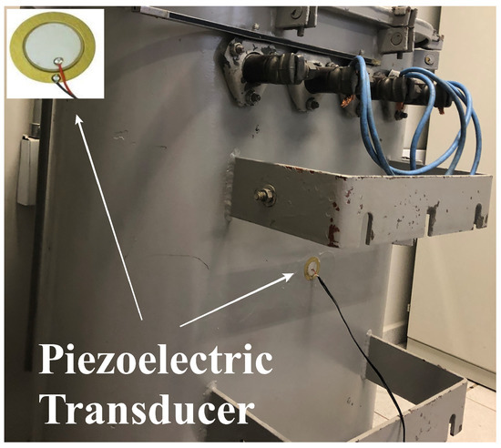 To evaluate the effectiveness of the proposed wavelet-based technique in characterizing the PD evolution, an electrode with a gap of 5 mm was placed in the transformer in order to produce the failure activity. A piezoelectric transducer was attached to the transformer wall in order to capture the acoustic emission waves that are produced by the failure (Figure 1). The sensors used in this work were the piezoelectric diaphragms, which have similar characteristics to conventional PZT ceramics [16].