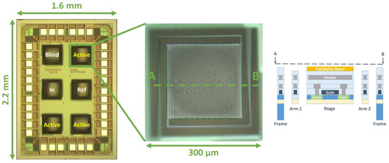 - Shlenkevitch, D.; Stolyarova, S.; Blank, T.; Brouk, I.; Nemirovsky, Y. Novel Miniature and Selective Combustion-Type CMOS Gas Sensor for Gas-Mixture Analysis—Part 1: Emphasis on Chemical Aspects. Micromachines 2020, 11, 345. [Google Scholar] [CrossRef] [PubMed]