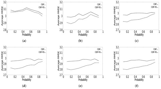 Averaged RMSE against probability plot, for (a) state-1 (b) state-2 (c) state-3 (d) state-4 (e) state-5 (f) state-6