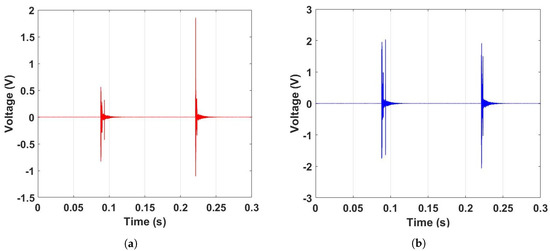 Raw PD acoustic emission signals for: (a) PZT; and (b) MFC.