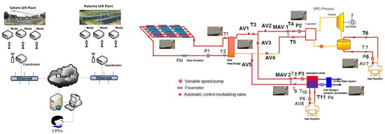 In this work we consider two LFR plants where PLC (Programmable Logic Controller) and SCADA (Supervisory Control And Data Acquisition) systems are used for monitoring and control. The first one, installed in Egypt, includes LFR collectors (model IDEA 1FC-1832) (see Figure 1) with a total area of 296 . It consists of a single linear Fresnel solar collector, thermocline storage tank, 4 kW organic Rankine cycle (ORC), and 35 kW thermally driven chiller. The second plant, which includes also the LFR collector, has been commissioned in the campus of the University of Palermo, Italy (see Figure 2). It consists of three identical LFRs, a thermocline ternary molten salt tank, 10 kW ORC, and 23kW LiBr chiller. The plant has a total collector area of 480 . Specifications of both plants are given in Table 1.