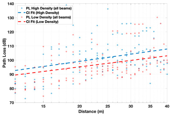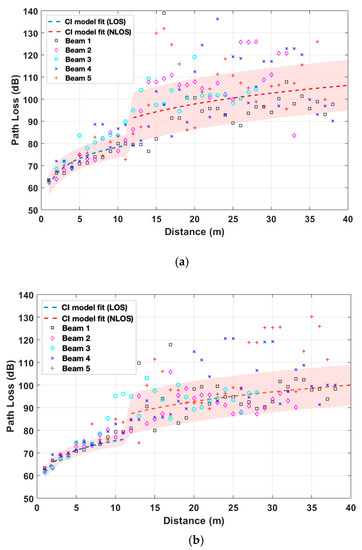 - Al-Samman, A.M.; Rahman, T.A.; Hindia, M.H.D.N.; Daho, A.; Hanafi, E. Path loss model for outdoor parking environments at 28 GHz and 38 GHz for 5G wireless networks. Symmetry 2018, 10, 672. [Google Scholar] [CrossRef]