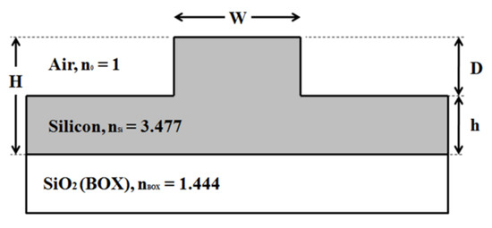 - Shaikh, A.J.; Sidek, O. Holistic Analysis and Systematic Design of High Confinement Factor, Single Mode, Nanophotonic Silicon-on-Insulator Rib Waveguides. J. Nanoelectron. Optoelectron. 2017, 12, 381–391. [Google Scholar] [CrossRef]