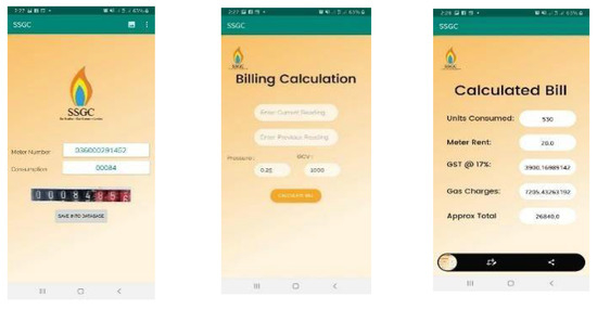 In November 2002, Pakistan’s large-scale gas company, Sui Southern Gas Company (Karachi, Pakistan) introduced computerized meter reading called Handheld. The handheld weighs 340 g and has 18 h battery backup. It can operate in a temperature between 10 and 55 degrees Celsius. The software was developed with C language and works on a DOS system. In this system, the meter reader enters the reading in the device manually, and it is sent to the server automatically. However, this process is not practical and is semi-automated and restricted. Furthermore, it can only be used by the company itself [3].