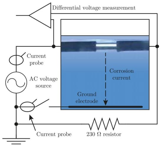 For electric lines, copper and Aluminum are common conducting elements. Around the world, Aluminum is the most commonly used material in the LV network. It is recommended due to its minimal price while still providing adequate electrical conductivity. Aluminum, on average, can tolerate corrosion in a wet atmosphere []. Once a layer of Aluminum oxide is applied to a metal surface, the corrosion rate comes to an end. However, eddy currents, whether DC or AC, are believed to trigger Aluminum corrosion. A specific current flow is required for corrosion; however, the mechanism is not well recognized []. This research explores the impact of several extremely critical criteria for AC-triggered corrosion in perspective of Aluminum as a conductive material in LV underground power lines. For water sunk conductors, the aqueous environment functions as an electrolyte and the findings will be used in statistics evaluation and risk assessment studies [].
