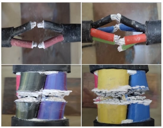 Cable insulation has a certain set of benefits and limitations and no single insulation material exhibits all of the desirable characteristics []. The choice of cable is solely determined by the environment where it would be placed, taking into account each of the afore mentioned parameters, as well as the cost and electric stress level. However, due to the contaminants present in the environment of highly alkaline soil under the earth, the installed cables’ sheath is easily targeted by chemical substances, such as salts, acids, alkaline earth metals, and so on, at high temperatures, as well as pressure, causing both the sheath and core shielding to deteriorate []. This loss of insulation material results in leakage current, causing electrical discharges, which eventually lead to conductor damage []. The erosion of plasticizers and oxidation are some of the processes that can occur in the thermal decomposition of PVC and which significantly contribute to current leakage among cores and ultimate failure [].