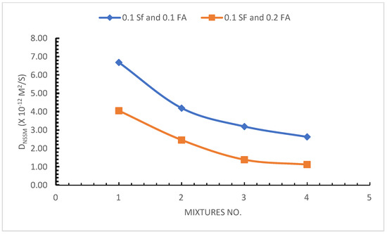 Comparison of Dnssm of 0.1 SF 0.1 FA and 0.1 SF 0.2 FA composition mixes M1–M4.
