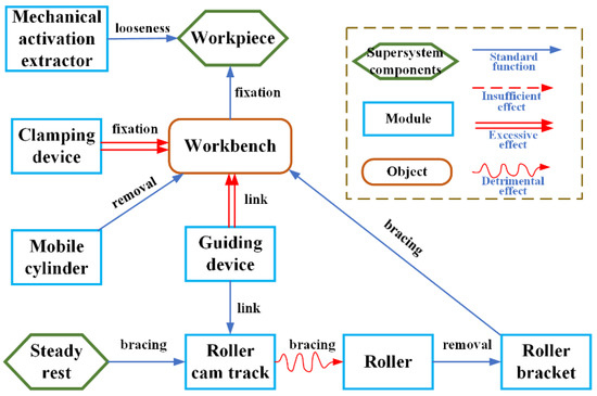 As shown in Figure 2, the system component analysis model is established. The system diagram shows all the functional relationships among the functional components and describes the functional relationships among the components through standard, insufficient, excessive, and harmful effects to determine the functional factors leading to the problems.