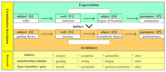 In the design process, it is necessary to limit the freedom of the roller in both the Y and Z directions in order to avoid the lateral movement and jump of the workbench during the movement, which is bound to introduce the corresponding devices or facilities, but this increases the complexity of the system. Combined with computer-aided technology, according to TRIZ problem description requirements, the station movement problem is transformed into a problem model. The designer formalizes the problem according to the format of the problem description template SVOP as: expected ‘roller + reduction + degree of freedom + moderate’; avoid ‘guide device + improvement + complexity + explicit’, as shown in Figure 3.