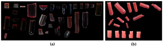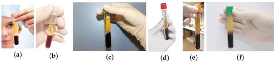 In the first scenario, an image with fragments of photographs of real blood in test tubes was used as training data, as shown in Figure 2a. The fragments were placed on a black background. In this case, .