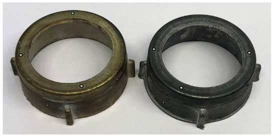 Wet rotor head made of CuZn39Pb3 (left) and of ZEP1510 (right).