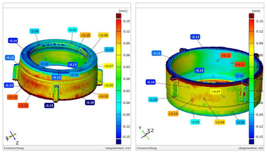 CAD false colour comparison of digitised wet rotor head made of CuZn39Pb3 and ZEP1510.