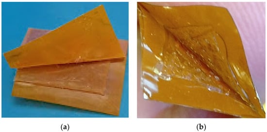 Polyimides are one of the common materials used in biomedical devices due to their flexible nature and stability during harsh fabrication conditions. Flexible electronics such as antennas, light-emitting diodes, and organic transistors are fabricated on polyimide substrates []. The existing in vitro studies have shown that numerous polyimides are nontoxic and biocompatible and show a minor change in their properties over a 20-month-long period during incubation in physiological conditions []. Due to their biocompatible properties, polyimides are widely used in strain sensors, pressure sensors [], and wearable electronics in biomedical applications [].