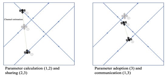 In Federated Learning (FL), not all data can be processed in the central server, so our model predicts and transmits the channel coefficients between satellite 1 and satellite 2, where the data sent by 1 to 2 are used to train channel estimation and prediction encoders on the latter [8,9]. Satellite 2 communicates learned parameters with satellite 3, reducing the computational load on one element in the network. As a whole, this should produce marked improvements in a wider network, see Figure 1.