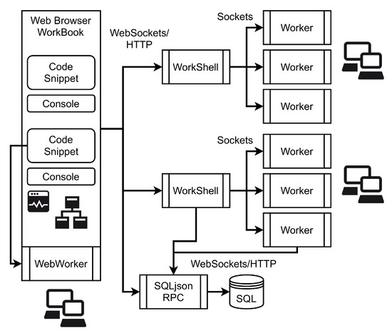 Web browser-based software architecture with remote worker processes [1].