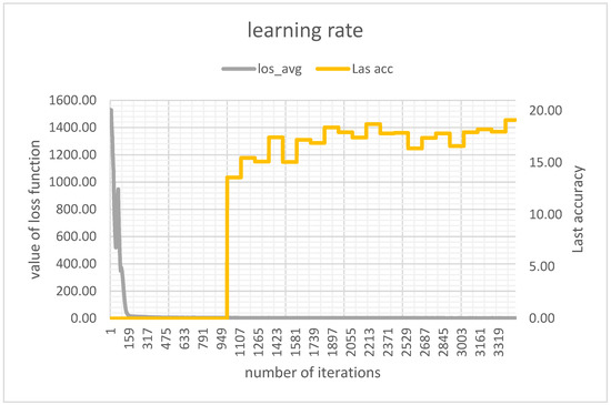 Figure 5 displays the learning rate and the process. With each iteration, weights are created, which make it possible to continue calculating with these values in further trainings. Additionally, with those weights, the use of additional GPUs becomes possible.