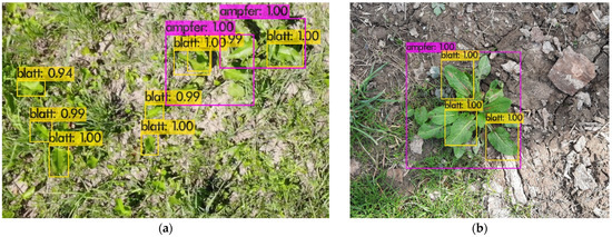 Training was conducted in two phases. In phase one, whole plant recognition was trained. In phase two, whole plant and leaf recognition was trained. Plant and leaf detection are shown in