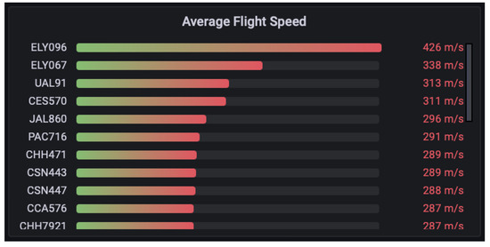 The dataset used contains flight information over a 24-h period from OpenSky Network (https://opensky-network.org/data/datasets, accessed on 3 January 2023). Each row of raw data represents the attributes at a unique point in time for a particular airframe (i.e., airplane) and is identified by the attribute icao24. Each row also includes an attribute callsign, which is the unique flight identifier assigned by an airline. The methodology and functions used in each query are explained to highlight the unique aspects of MobilityDB and Grafana.
