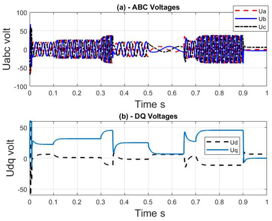 Figure 4 illustrates the ADE observer system’s and d, q-axes control voltage waveform, respectively.