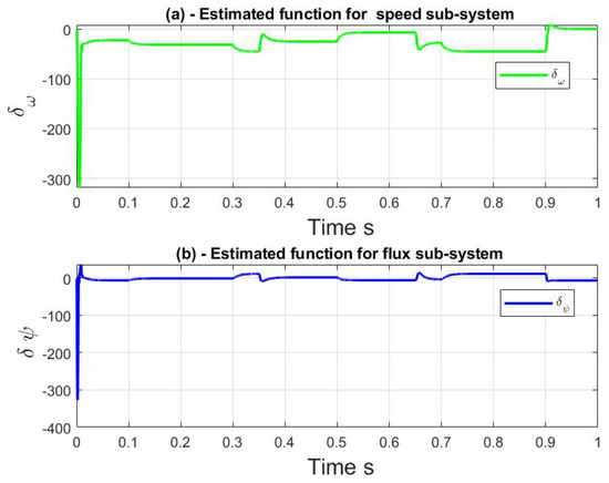 Noting that in applying the feedback (6), there is some uncertainty in the knowledge of the motor parameters and the state variables. Furthermore, the motor parameters and can vary significantly due to Ohmic heating while and can also vary due to magnetic saturation [15]. For that, assuming that all neglected terms for each subsystem as an error signal ( and ) consequently, the dynamics of the output () (). Defined by (7) and (8), respectively, will be expressed as: