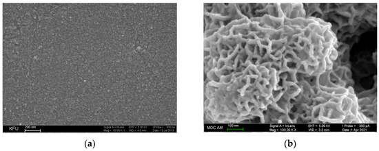 Scanning electron microscopy data confirm the presence of a modifier on the GCE surface (Figure 1). A sponge-like structure from the intertwined nanorods with a width of 15–20 nm included in the surfactant film has been obtained for MnO2 NR (Figure 1b).