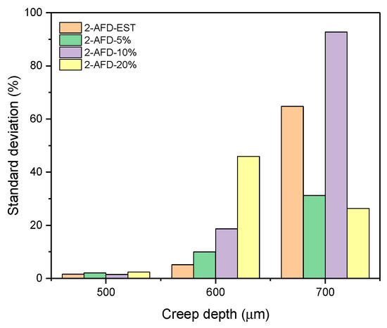 Moreover, the standard deviation of these results increases with the crack depth, as shown in Figure 1. Here, it can be observed that the measurements are not homogeneous and tend to show large variations depending on the measured region. These deviations may be given by the abovementioned drag of the scratched material with the cut blade.