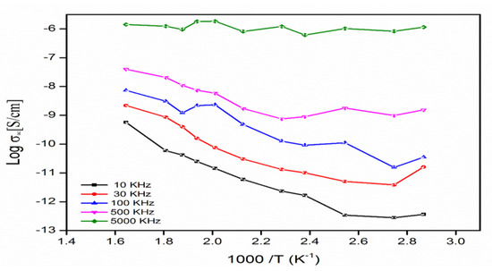 The frequency dependence of the A.C conductivity in the ZnS nanoparticles at different temperatures (293–373 K) is shown in Figure 11. The range of low frequency conductivity increases with temperature, while the temperature is independent in the high-frequency region. In addition, the conductivity is found to be less frequency dependence in the low-frequency regime.