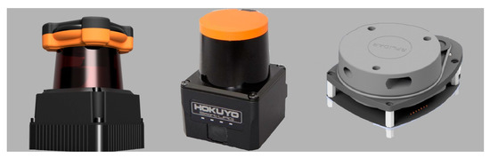 There are different types of laser scanners on the market that have varying capabilities, such as single- and multi-layer scanning, and it is important to choose the right one for a specific application. The two portable laser scanners hand-held ZEB-REVO (GeoSLAM, Alexandia, VA, USA) and the Leica Pegasus backpack (Leica Geosystems AG, Heerbrugg, Switzerland) were compared in both indoor and outdoor environments to verify the measuring capability for different environments and applications [3]. Some of the most commonly used 2D laser scanners are Hokuyo (Hokuyo Automatic Co. Ltd., Tomakomai, Japan), SICK (SICK, Minneapolis, MN, USA) and RP Lidar (SLAMTEC, Shanghai, China).
