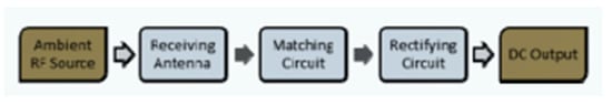 The radiative mechanism is better suited for larger distances between the transmitting and receiving nodes. Harvesting, converting, and storing such energy is now possible. A typical energy harvesting system comprises four stages: exciting the antenna with incoming electromagnetic waves, rectifying the power at the output of the antenna, converting the power to desirable voltage and current levels (preferably DC), and storing the energy in a capacitor or battery for further use [2].