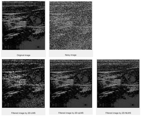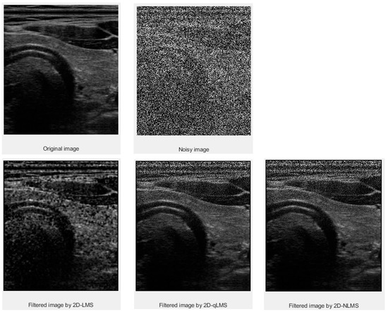 As stated in the conclusions above, NLMS is the best of the algorithms tested. Additionally, as we already know that QLMS functions better than LMS, we concluded that inducing the q-factor into the NLMS algorithm would result in a better algorithm proposition for image processing in ultrasound.