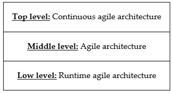 At the middle level, the system is represented as an agile architecture and is described as a multilevel relatively finite state automaton [