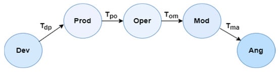 In general, five phases of the life cycle can be distinguished: Development (Dev), Production (Prod), Operation (Oper), Modernization (Mod) and Annihilation (Ang). The chain of transformations can be represented as