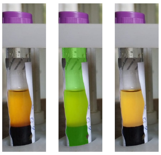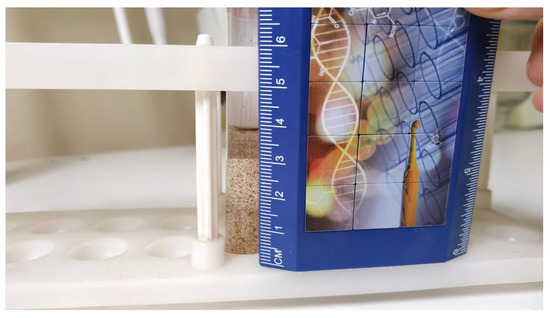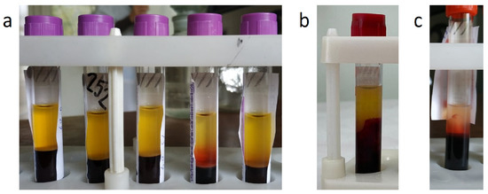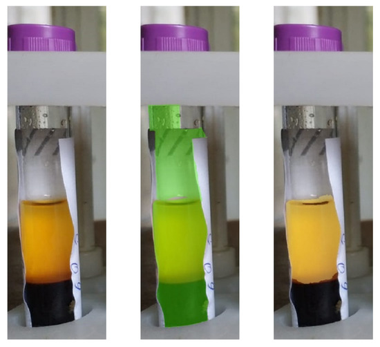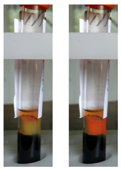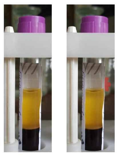 The upper fraction can contain erythrocyte hemolysis products. In this case, it turns out to be intensely pink (Figure 7) and is considered unsuitable for further research. With a sufficient number of relevant images, such an object could be recognized by the network; however, tubes showing signs of hemolysis are usually discarded in the early stages of sample handling.