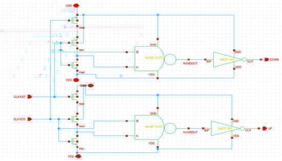 Schematic of Phase frequency detector.
