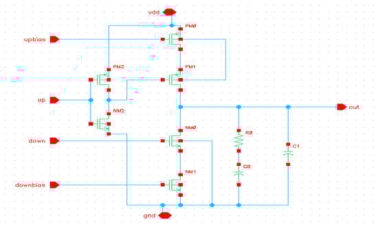 Schematic of charge pump with Low Pass Filter.