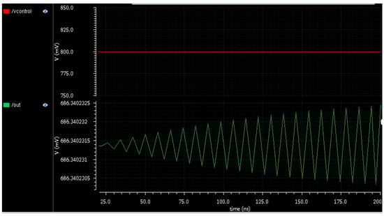 The output waveforms of VCO are shown in Figure 10 with respect to the input control signal. It shows the frequency of the signal produced by VCO at a constant voltage of Vcontrol = 800 mV.