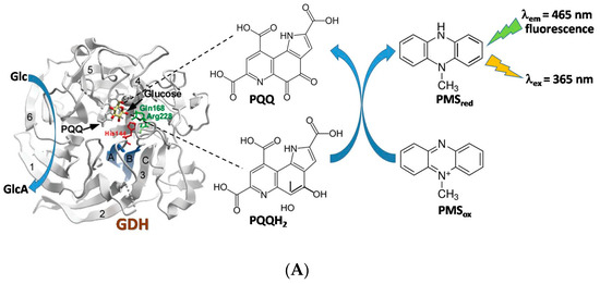 - Wells, P.K.; Melman, A.; Katz, E.; Smutok, O. Fluorescent sensor based on pyrroloquinoline quinone (PQQ)-glucose dehydrogenase for glucose detection with smartphone-adapted signal analysis. Microchim. Acta 2022, 189, 371. [Google Scholar] [CrossRef] [PubMed]