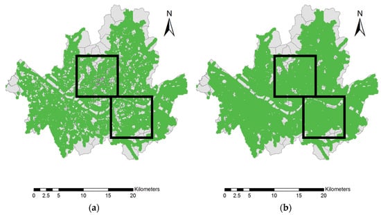 Seoul traffic accessibility within 5 min during (a) rush hour; (b) non-rush hour times.