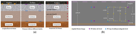 Pavement networks play a key role in our modern societies by accommodating the economical, efficient, and safe movement of goods and people [1]. In addition to their significant economic and societal impacts, pavement construction and maintenance activities demand an enormous amount of natural, and mainly non-renewable, resources annually, and, hence, can result in a significant environmental footprint if not managed properly [2]. Therefore, maintaining the long-term performance and durability of pavements is a common goal at different levels including the planning, designing, construction, and management of transportation infrastructure [3,4]. Pavements are typically designed to last for several decades. Traditionally, we have mainly relied on empirical design based on limited experimental studies that were conducted between 1956 and 1961 in the U.S. [4]. Despite the relatively good success rate of these approaches in the past, the appearance of premature distresses and unexpected shortening of pavements’ service life during the past two decades have motivated pavement engineers and researchers to further investigate the contributing mechanisms behind these phenomena. To this end, a paradigm shift in terms of pavement design and material characterization has been happening over the course of the past two decades which requires moving away from purely empirical approaches toward linking the empirical and mechanistic characteristics to develop better distress prediction models. Development of the Pavement Mechanistic-Empirical Design (PMED) [5] can be named as one of the well-known examples in this area. Although a robust mechanistic platform for modelling pavement performance is a positive step forward in achieving a better accuracy when designing pavement structures, it is also crucial to calibrate and verify pavement structural responses and performance trends in the eye of the changing climate and introduction of unconventional paving materials [6]. This requires systematic management of the transportation infrastructure, performing regular pavement condition assessments, intervening for maintenance and rehabilitation activities in a timely manner, and improving the practice of design and construction to accommodate for the desired resilience level against climate change effects and the dynamic nature of the exerted traffic loading. The development of autonomous pavement monitoring systems would, therefore, yield several advantages in terms of informing decision making about the timing of maintenance and rehabilitation (M&R) activities based on more realistic performance prediction models [7]. As a result, developing smart pavements has recently become the focus of some research groups across the world.