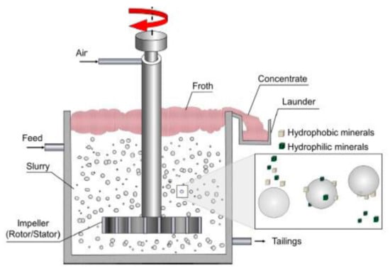 Chemical reagents are added to a milled ore slurry to facilitate separation and enhance the difference in hydrophobicity between unwanted gangue and valuable minerals [3,4,5,6]. A typical reagent suite consists of collectors, depressants, frothers and sometimes activators [7,8].