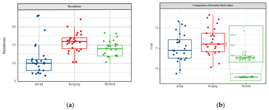 In the efficiency test, the average number of iterations for the hybrid iterative model optimization method was 13.86, which increased by 26.7% compared to SVM and decreased by 17.75% compared to Kriging. The average final iteration value for this method was 9.63, which decreased by 13.57% and 16.27%, respectively, compared to the other two methods.