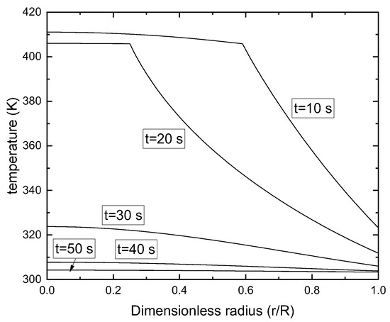 where , ki, ρi, and ci (j = s, l) are the thermal diffusivity, thermal conductivity, density, and specific heat capacity of the solid and liquid phase, respectively; R(t) is the position of the solid–liquid interface and R(0) = rp.