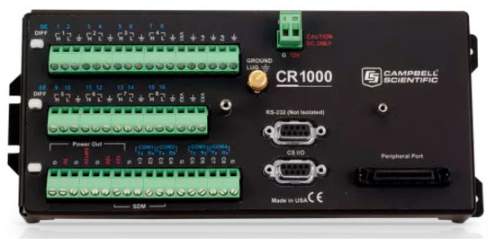 The CR10X (Figure 1) has become a standard in many industrial and research measurement applications. Renowned for its unrivaled reliability and exceptional energy efficiency, it is widely used in operations requiring high autonomy in the field, and in complex applications, such as meteorology, hydrology, geotechnics and structural monitoring. This datalogger is equally capable of operating on a test bench device or as a networked industrial control system [12].