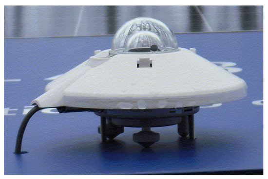 The Eppley pyranometer (Figure 2) measures the global radiation (direct + diffuse) [14] of an entire hemisphere in the wavelength range 0.3 to 3 µm. It has a receiving surface formed by two concentric silver rings; the inner ring is coated with black, the outer ring with white. The temperature difference between the two rings is measured by thermocouples in thermal contact with the inner surfaces of the rings but electrically isolated. This instrument is used to measure the solar radiation incident on the greenhouse. Its sensitivity is 30 μV·W−1·m2, and its lapse of response is 3.8 s [15].