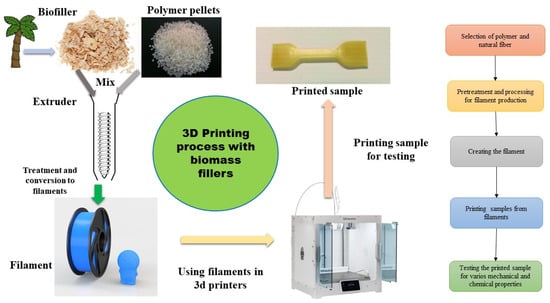 The cycle of 3D printing using natural fibers. Reprinted with permission from Ref. [11]. Copyright 2020 Materials.